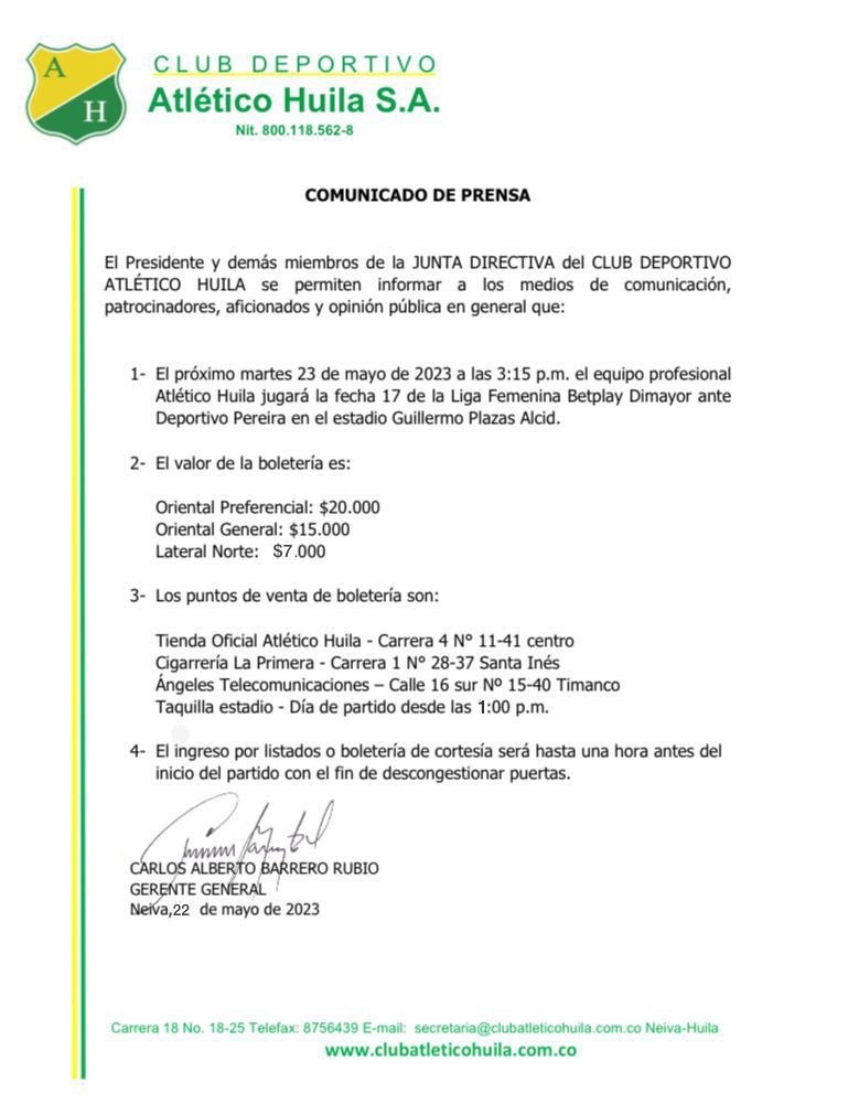 Este martes 23 de mayo se definen los 8 clubes clasificados a cuartos de final de la Liga Femenina profesional en Colombia, Atlético Huila es 11 en la tabla de posiciones con 20 puntos y está a dos puntos del octavo lugar.
