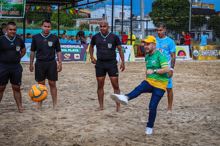 El saque de honor estuvo a cargo del garzoneño Felipe Victoria director de INDERHUILA quién apoya la realización del evento deportivo que se cumple por primera vez en el departamento del Huila, el Fútbol Playa es en una disciplina que crece a nivel regional y ha contado con varios de sus jugadores en Selección Colombia, los mejores posteriormente serán seleccionados para competirá en la Prelibertadores de Fútbol Playa en representación del Huila.