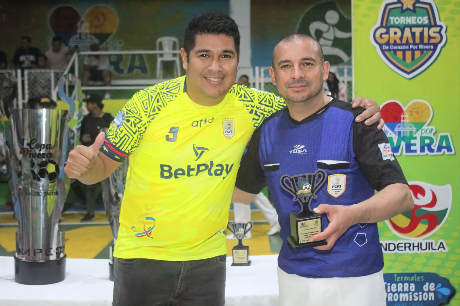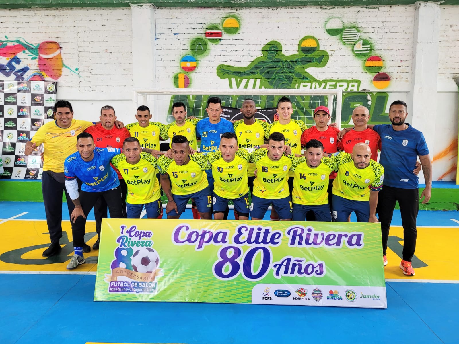 Alcaldía de Corazón por Rivera, Jumder, Termales tierra de promisión, InderHuila, Federación Colombiana de fútbol de salon, Protein River, Balones Balten, Policía Nacional, Bomberos Voluntarios de Rivera, Secretaría de desarrollo, cultura y turismo de Rivera, Empresas públicas de Rivera, ESE Hospital Divino Niño, Bachestig uniformes deportivos, Ibis Sports ropa deportiva, Motion Sport de Rivera y los medios de comunicación local que se unieron para llevarles la transmisión con Vorágine Tv de José Luis Claros, Tú Radio Vibra y Huila Sport.